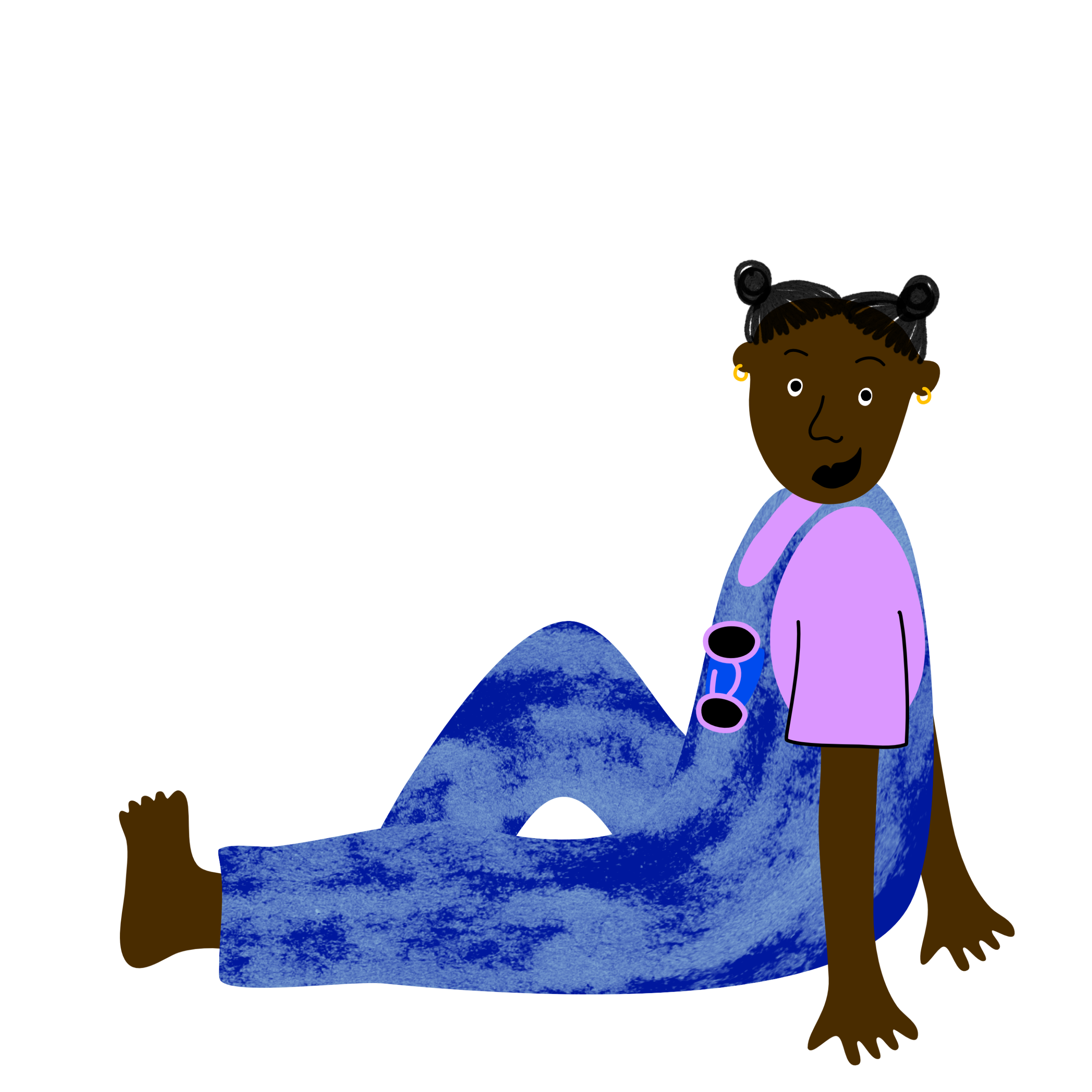 Piirretty istuva ruskea ihmishahmo sinisissä lappuhaalareissa.